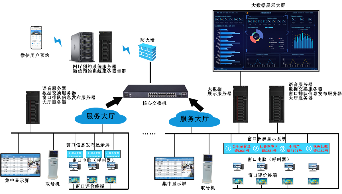 排隊叫號系統顯示設備可以是單雙色LED屏,也可以是液晶顯示屏,用于展示排隊數據,也可以從液晶顯示屏出發聲,