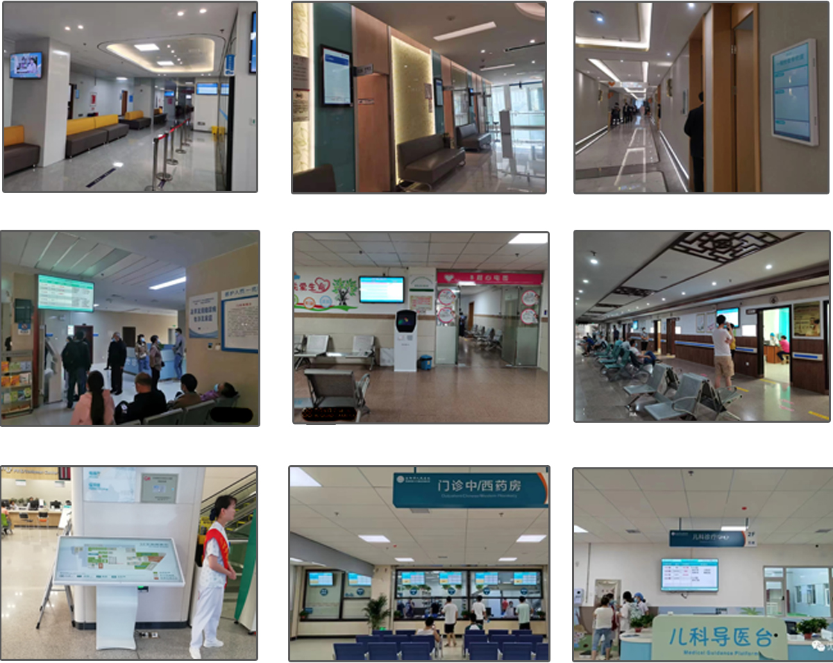 醫療叫號系統所使用的硬件設備包括:自助報到機、診室門口屏、集中顯示屏、醫生排班顯示屏、自助取單機等,其中診室門口屏有15.6、18.5、21.5、23、27等尺寸,集中顯示屏有32、43、49、55、65、75、85、100等尺寸,報到機支持壁掛和立式兩種,可增加二維碼掃描模塊、小票打印機模塊、刷卡模塊、身份證識別模塊、攝像頭模塊等外設。