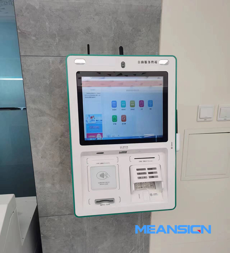 定制的銘視自助存取款設備,應用在學校實訓中心,模擬銀行金融機構實操,它具有存款、取款、卡卡轉賬、查詢余額、修改密碼、辦理開戶、辦卡等功能。外觀簡約時尚,功能齊全,可擴展性強,安全性,可靠性,實用性為一身,持續工作時間長,具有操作響應速度快、便捷、高效的特點,滿足財會金融專業學生的實操需求。壁掛式自助服務終端,體積小,占用空間小,具有觸摸屏、金屬數字鍵盤、讀卡器、感應器、攝像頭、憑條小票打印功能模塊,實現信息查詢、業務辦理等功能。