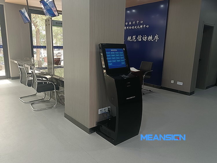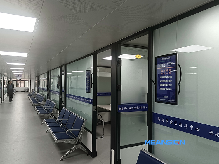 在糾紛化解中心接待大廳,放置排隊取號機,前往咨詢辦理業(yè)務(wù)的群眾,在取號機選擇“登記取號”類別進行取號,接著登記區(qū)會依次呼叫號碼牌辦事人員前往窗口。在與群眾訴求溝通了解后,工作人員會指引群眾到取號機,選擇相對應(yīng)的業(yè)務(wù)類別取號。排隊取號機支持多種業(yè)務(wù),自定義業(yè)務(wù)類型,號票打印,手動取號、刷身份證取號。接待大廳登記區(qū),吊裝叫號顯示屏,顯示當(dāng)前正在呼叫的號碼,下一位辦理的號碼,維護現(xiàn)場秩序,規(guī)范業(yè)務(wù)流程。每個接待室門口,同樣安裝豎屏顯示屏,顯示每個接待室的門牌號、日期時間、單位名稱、溫馨提示等信息。當(dāng)有業(yè)務(wù)辦理排隊時,門口屏?xí)棾雠抨牻刑栮犃校@示當(dāng)前辦理的號碼,下一位辦理的號碼。