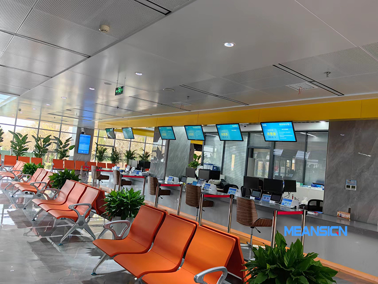 在政務(wù)排隊等候大廳,安裝液晶綜合顯示屏,與語音叫號同步,顯示大廳業(yè)務(wù)的排隊等候進度,同時每個業(yè)務(wù)辦理窗口,吊裝窗口叫號屏,顯示每個窗口的編號,當(dāng)前正在辦理的號碼,以及等候的人數(shù),窗口辦理事項,系統(tǒng)依次按照排隊順序呼叫辦理人員,保持現(xiàn)場有序進行,提高業(yè)務(wù)辦理效率。