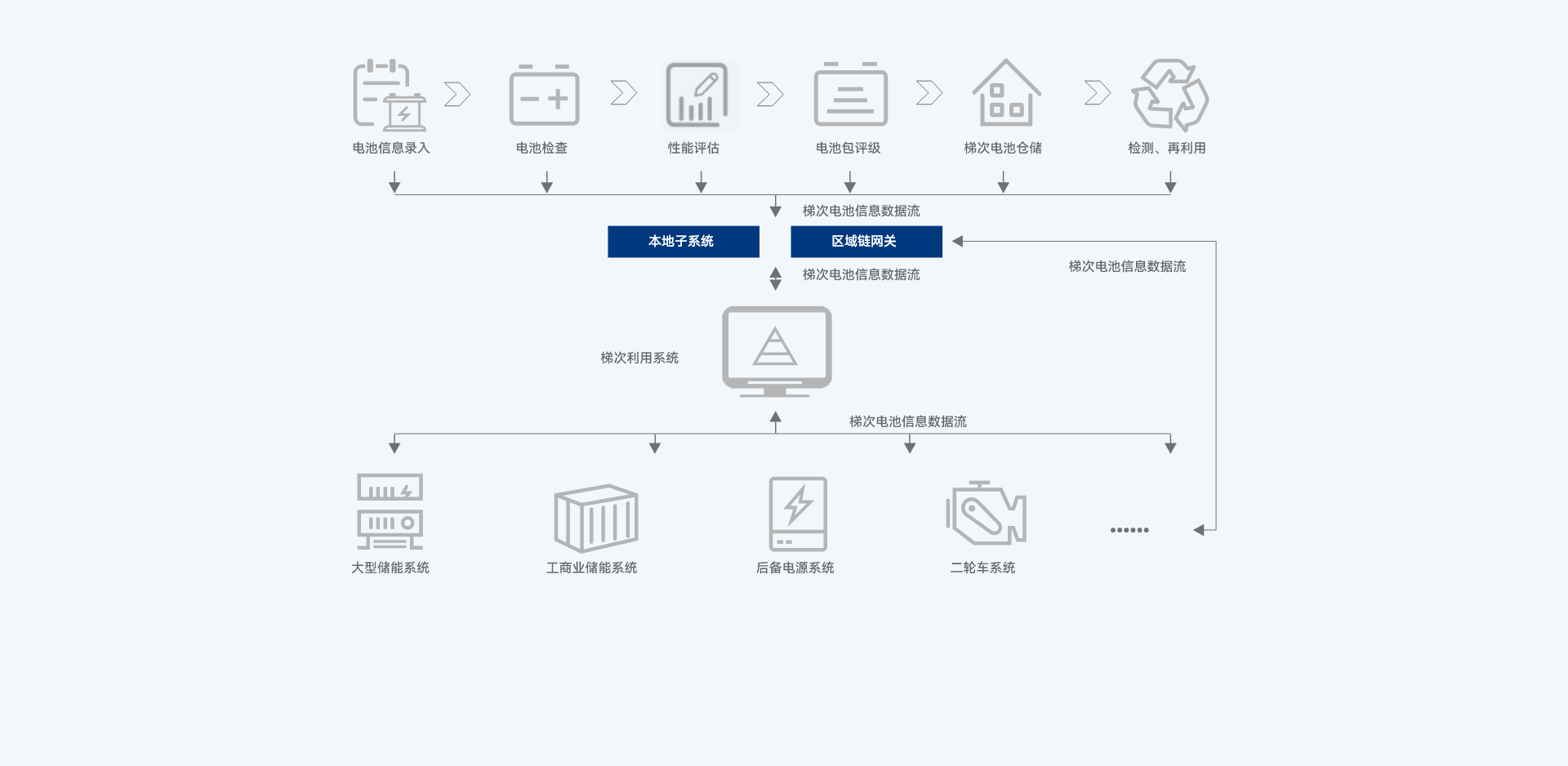 利用區塊鏈技術對梯次電池進行建檔和身份認證,并可實施強制年檢。